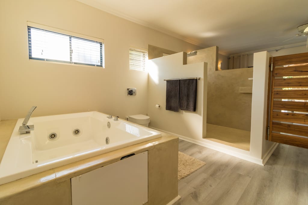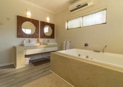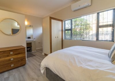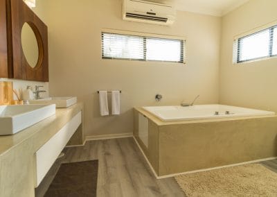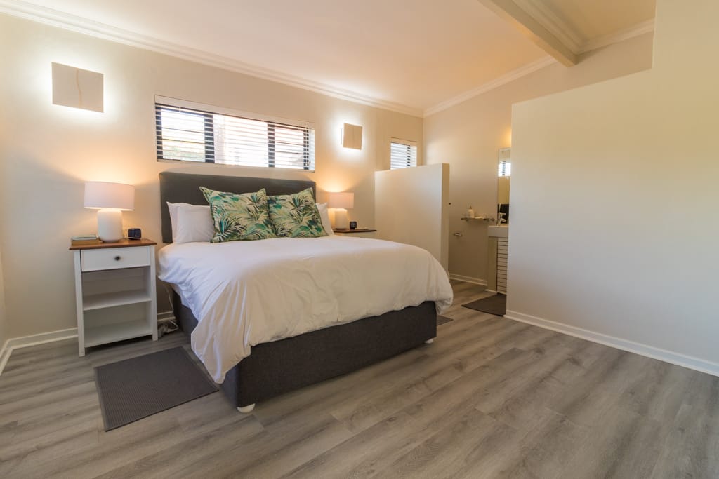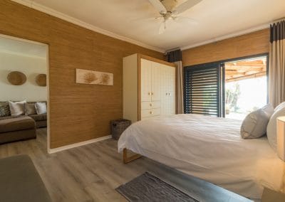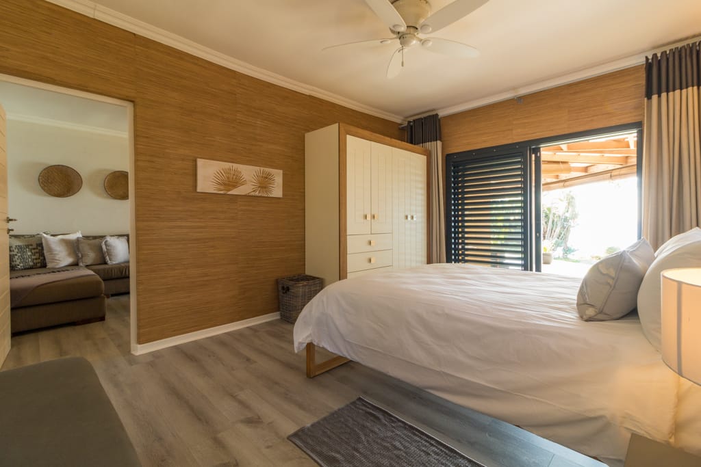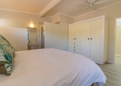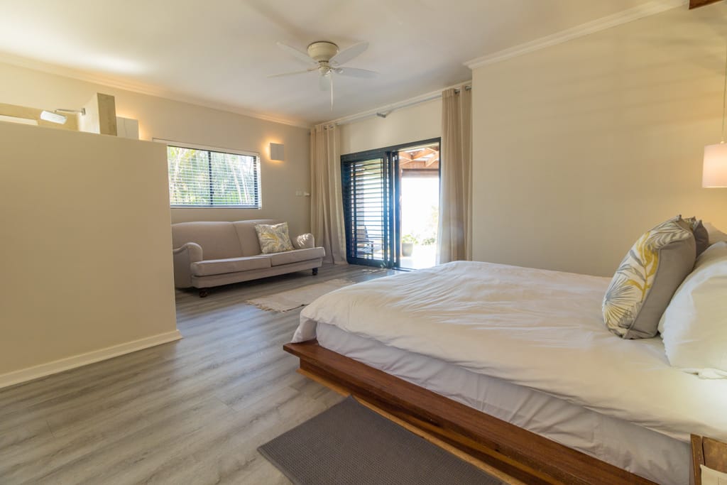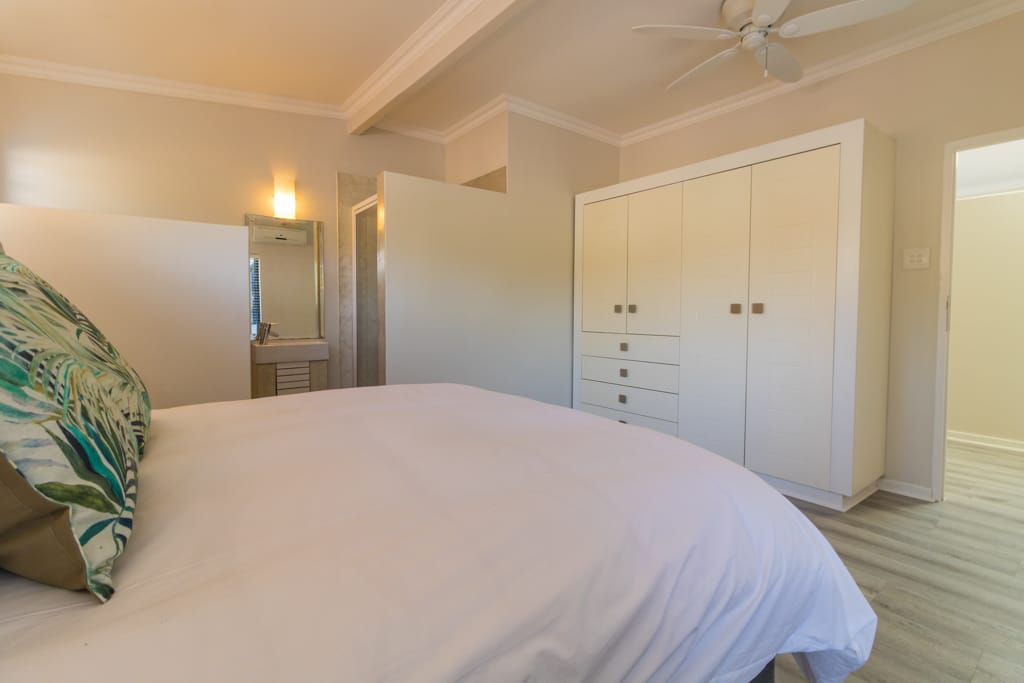 Has a King Size bed, sea views, air-con, TV, ceiling fan, built in wardrobes, access onto front verandah and en-suite bathroom with bath, shower , loo & double basin.